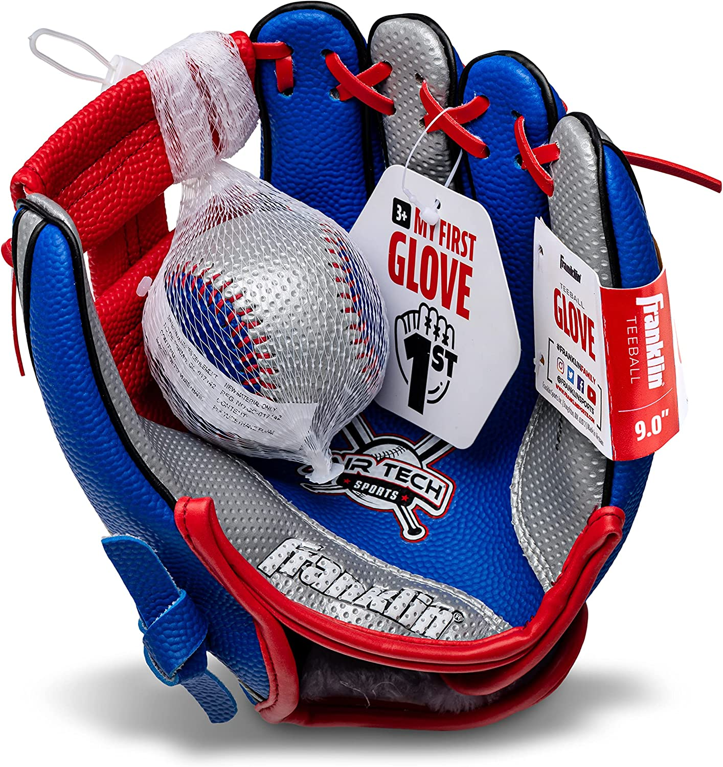 Franklin Sports Teeball Glove - Left and Right Handed Youth Fielding Glove - Neo-Grip - Synthetic Leather Baseball Glove - 9.0 Inch - Ready To Play Glove with Ball
