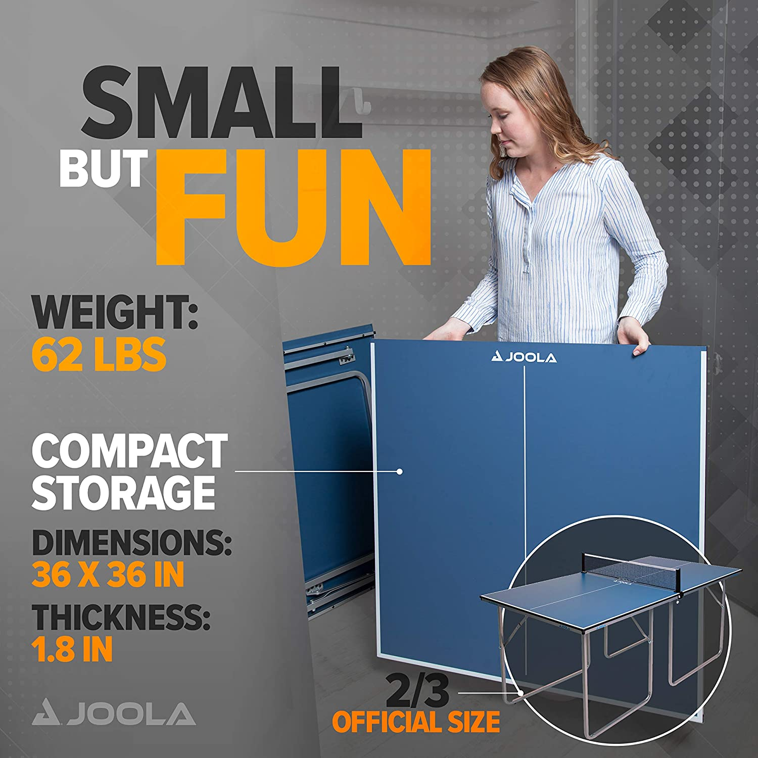 JOOLA Midsize Compact Table Tennis Table Great for Small Spaces and Apartments – Multi-Use Free Standing Table - Compact Storage Fits in Most Closets - Net Set Included - No Assembly Required