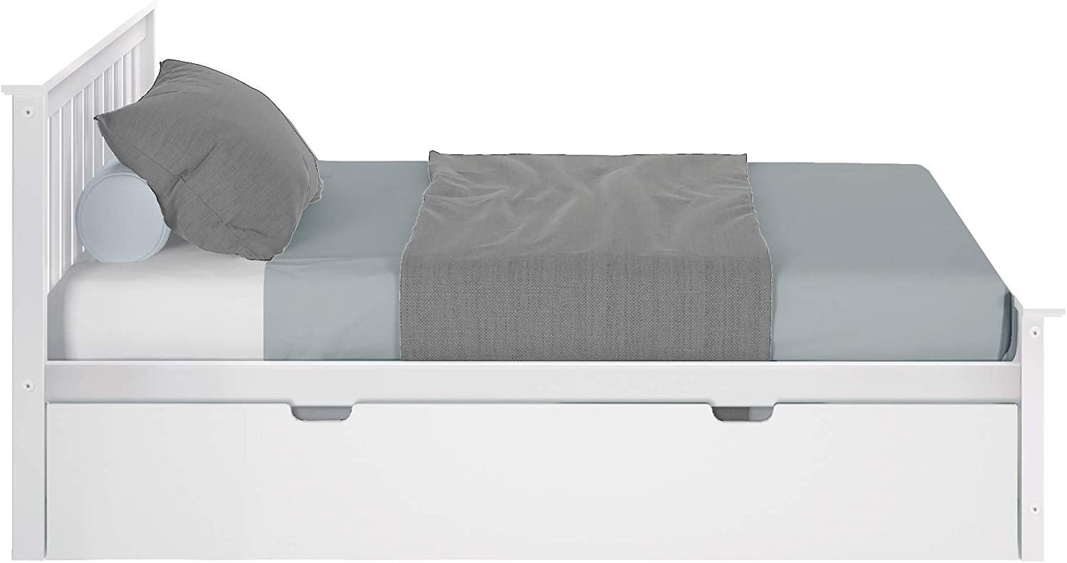 Including single bed size trunk + slats. Trundle fits standard double bed mattresses up to 20.32 cm thick. The ramps overlap the bed rails to prevent sliding under the bed.